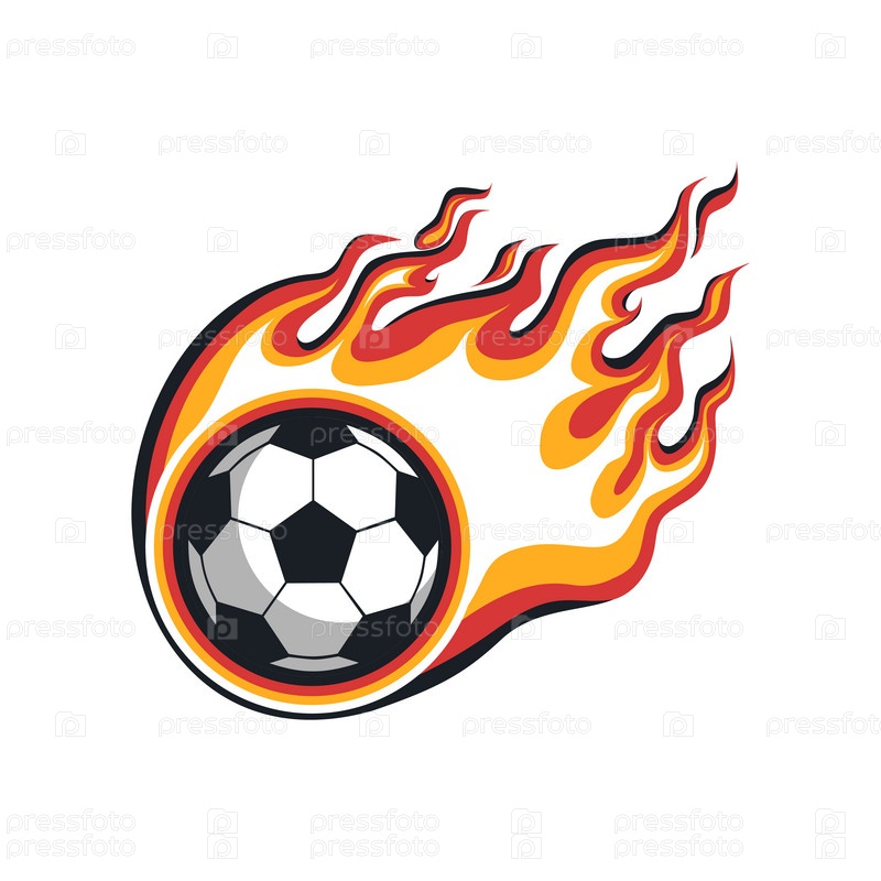 Футбольный мяч в огне, пламя. Цветная векторная иллюстрация