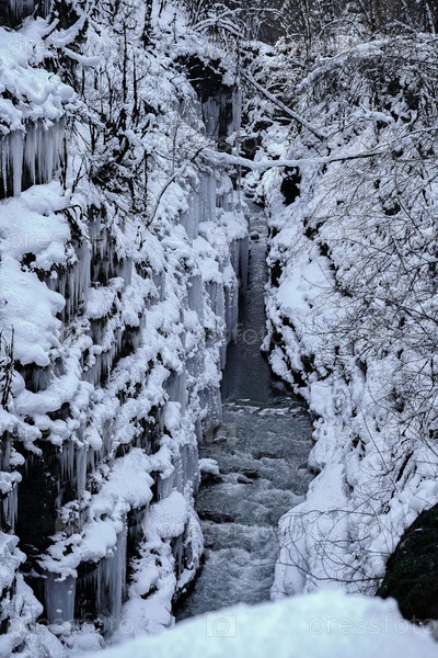 Зимний каньон реки Курджипс. Гуамское ущелье. Россия