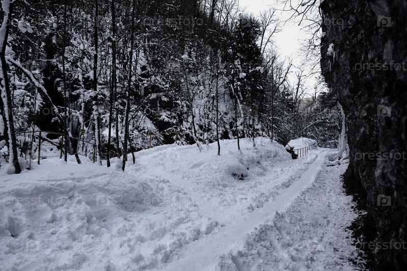 Зимний каньон реки Курджипс. Гуамское ущелье. Россия