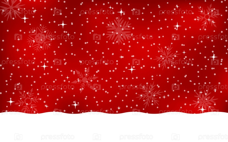 Рождественский красный фон со снежинками. . Векторная иллюстрация