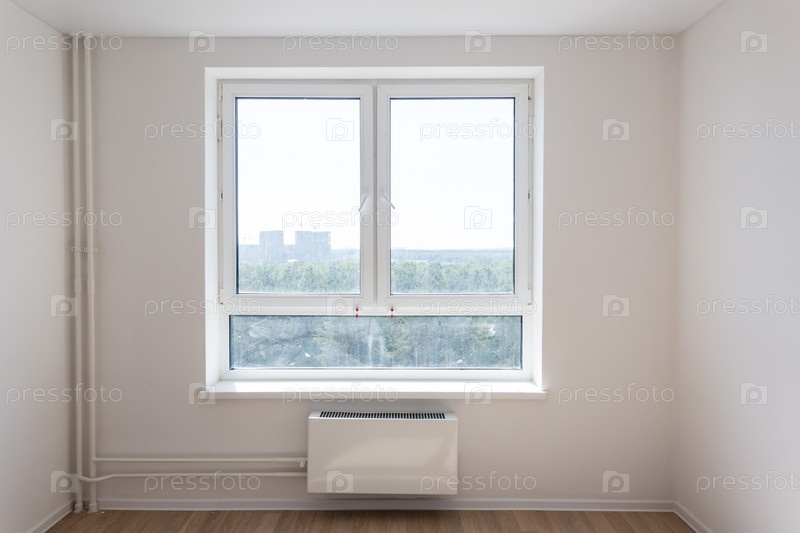 Новые трубы, радиатор и окна. Крупным планом изображение, концепция ремонта
