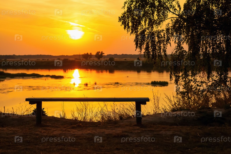 Золотой закат на берегу реки. Красота природы, тишина и покой