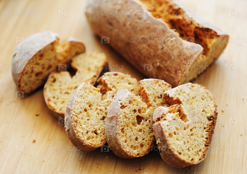 Нарезанный белый бездрожжевой творожный пшеничный хлеб на деревянной доске