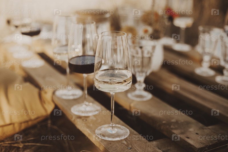 Деревянный стол со стеклянной посудой для пикника