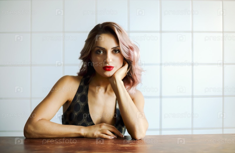 Элегантная женщина за деревянным столом