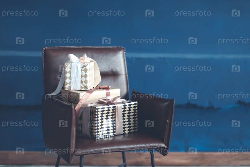 Стек рождественских подарков на кресле
