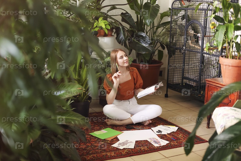 Молодая женщина создает свою карту желаний фэн-шуй. Мечты и пожелания