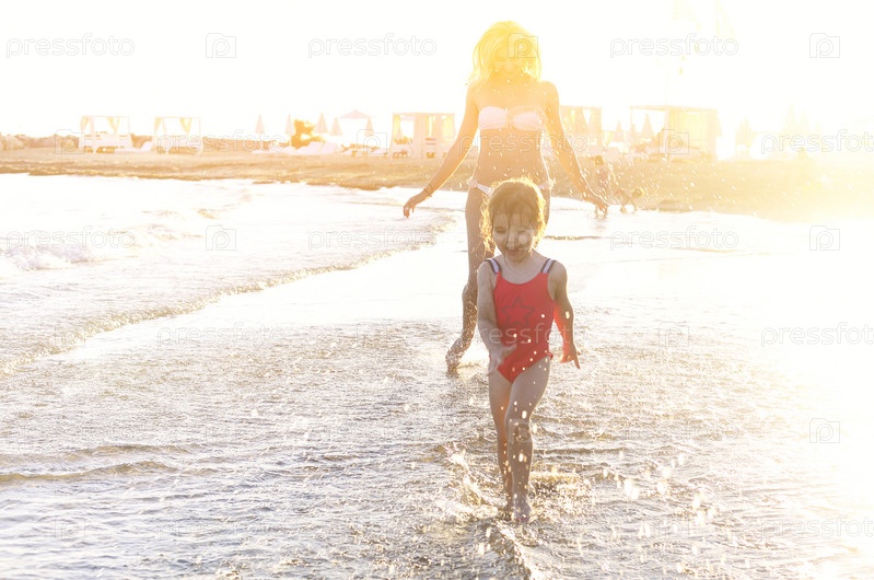 Мать бежит со своей маленькой дочерью
