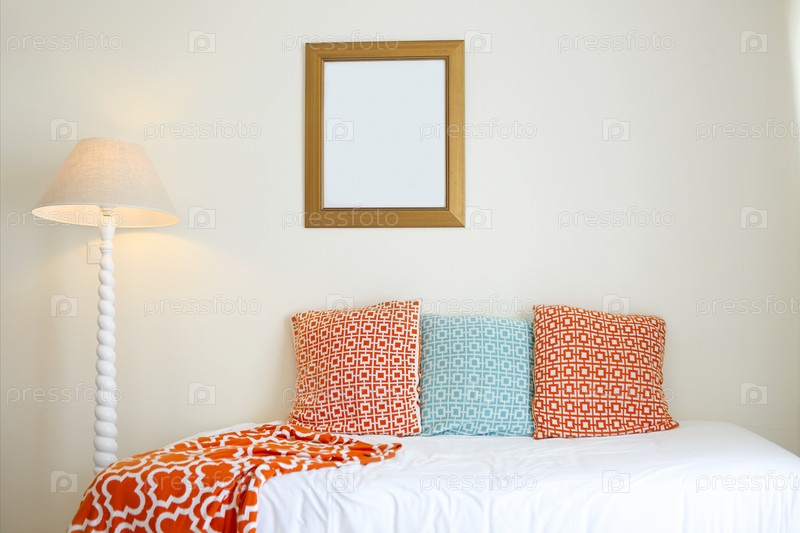 Удобные подушки на белом украшении кровати
