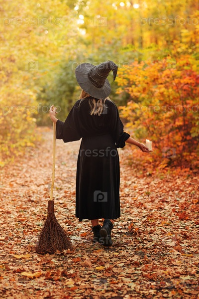 Неузнаваемая ведьма гуляет по осеннему лесу