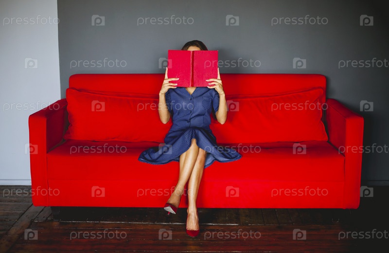 Женщина читает книгу на диване
