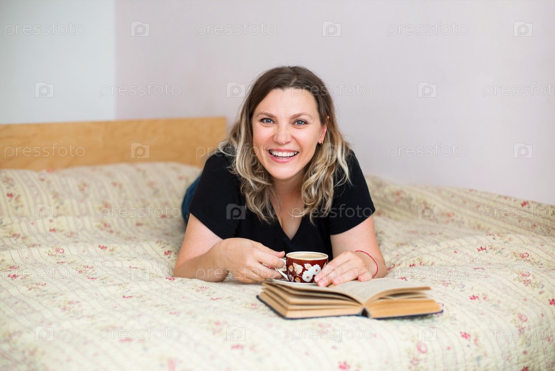 Очаровательная женщина читает книгу на кровати