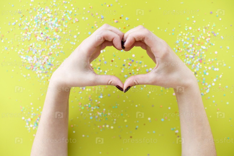 Женщина делает форму сердца руками