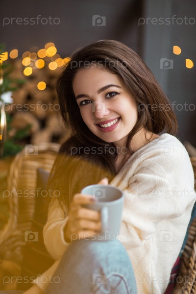 Молодая женщина наслаждается горячим напитком