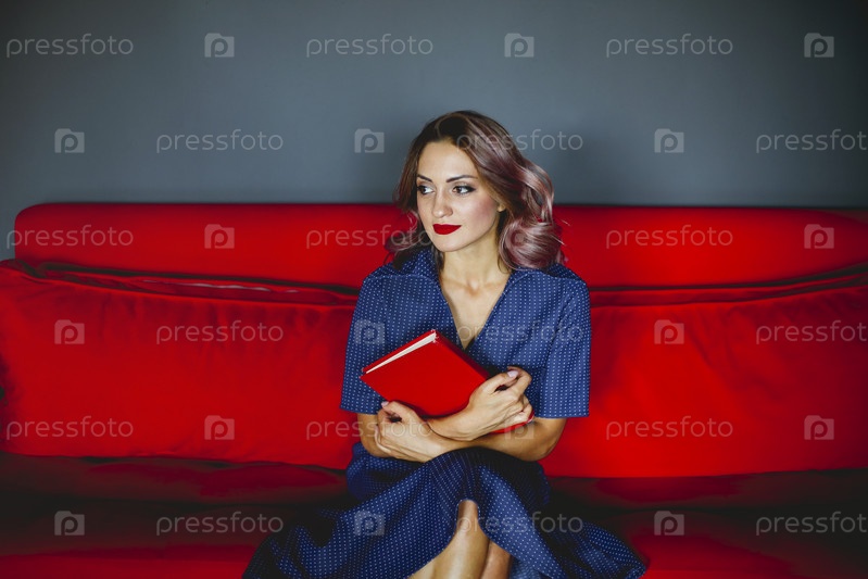 Женщина читает книгу на диване