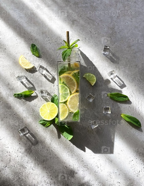 Свежий лайм, вода с лимоном и мятой, коктейль, детокс-напиток, лимонад в бутылке