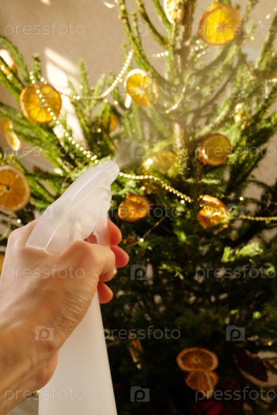 Опрыскивание елки водой из пульверизатора, продление жизни елки в домашних условиях, полезные советы