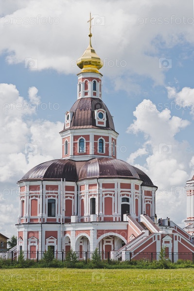 Двухъярусная церковь на фоне летнего поля
