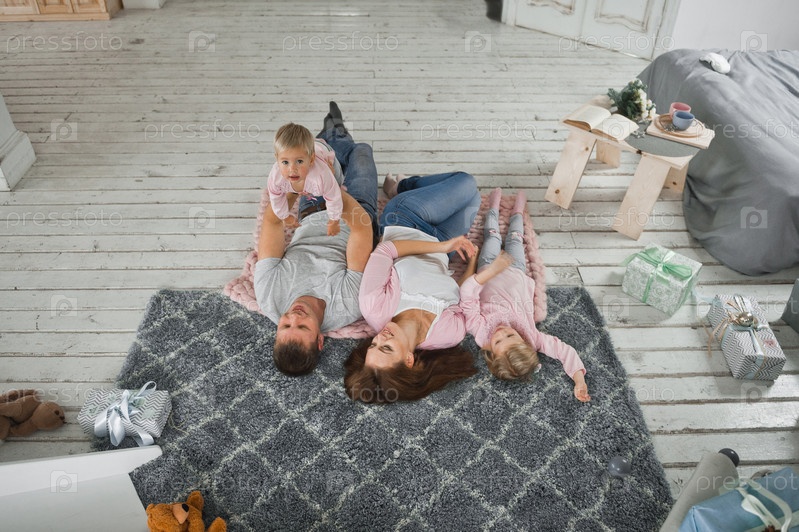 Мама, папа и две дочери счастливо отдыхают в новогодние праздники