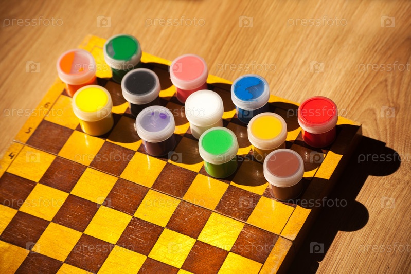 Красочная акварельная краска на шахматной доске