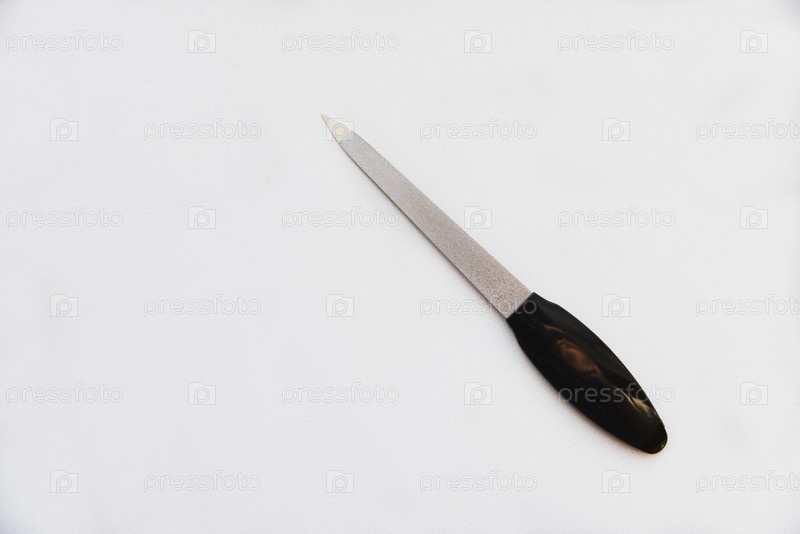 Маникюрные аксессуары ножницы и файл на белом фоне