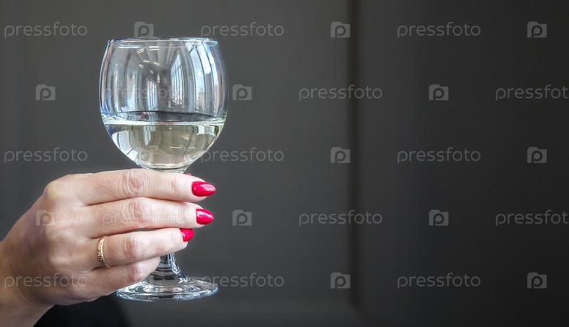 Женская рука держит бокал с белым вином