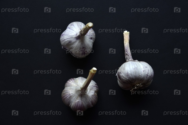 Луковицы чеснока на черном фоне. Красивые луковицы чеснока крупным планом