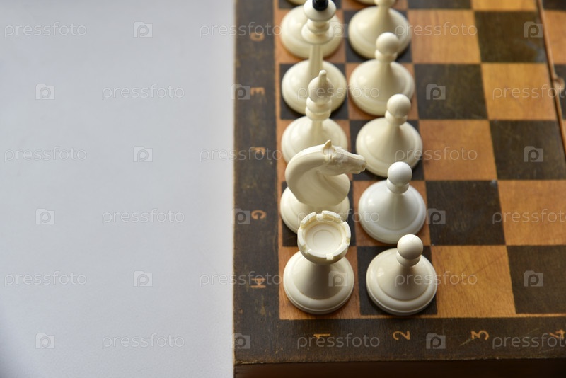 Старая шахматная доска с белыми и черными фигурами