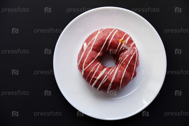 Сладкие пончики пончики на белой тарелке. Американские вкусные и сладкие пончики