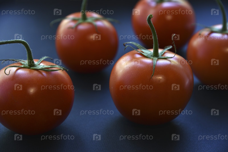 Несколько вкусных красных помидоров подряд на черном фоне. Сочные красные помидоры крупным планом