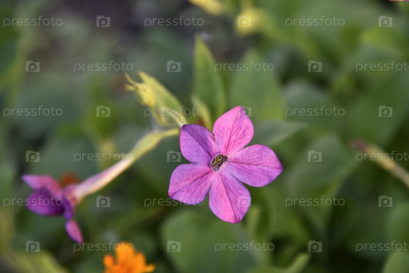 Красочные цветы ароматного табака Nicotiana alata в саду летом