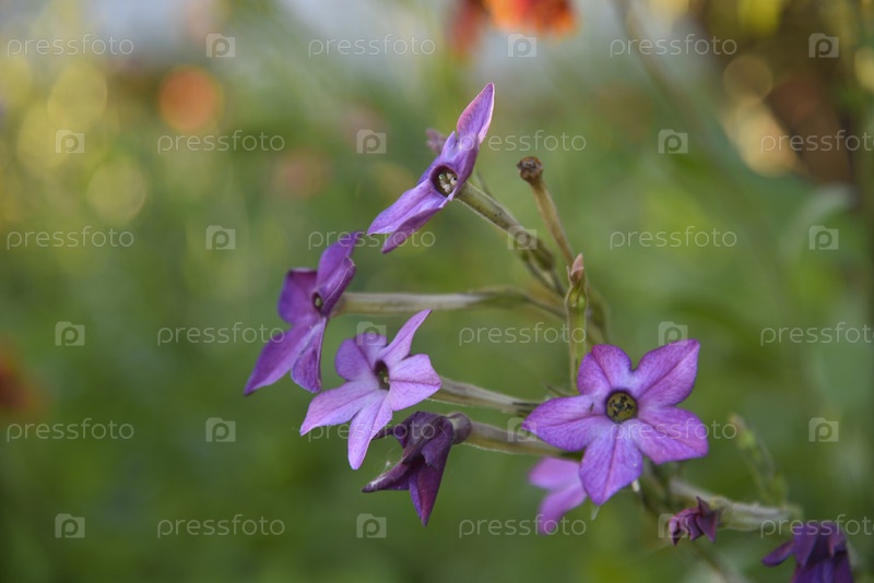 Красочные цветы ароматного табака Nicotiana alata в саду летом