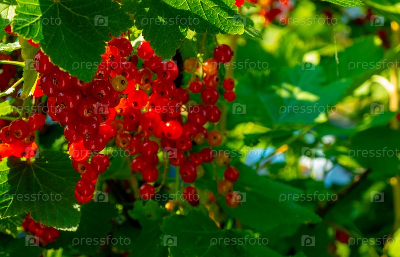 Зрелые ягоды красной смородины на ветке в саду Мородина красная, обычная или садовая морозина Ribes rubrum