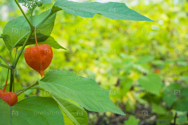 Physalis alkekengi - оранжевые фонари физалиса алькекенги среди зеленых листьев