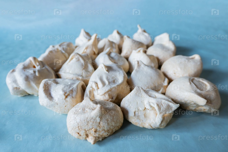 Домашние французские безе молочного цвета на синей бумаге