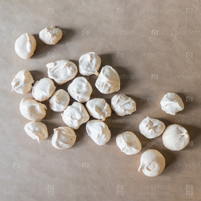 Домашние французские безе молочного цвета на мятой крафт-бумаге