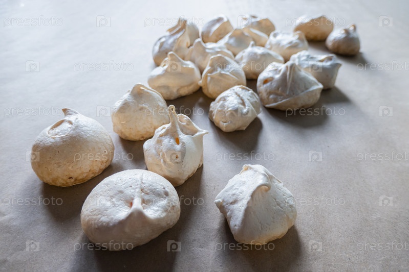Домашние французские безе молочного цвета на мятой крафт-бумаге