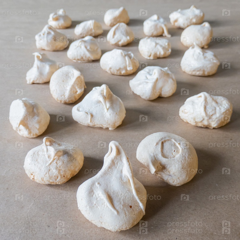 Домашние французские безе молочного цвета на мятой крафт-бумаге