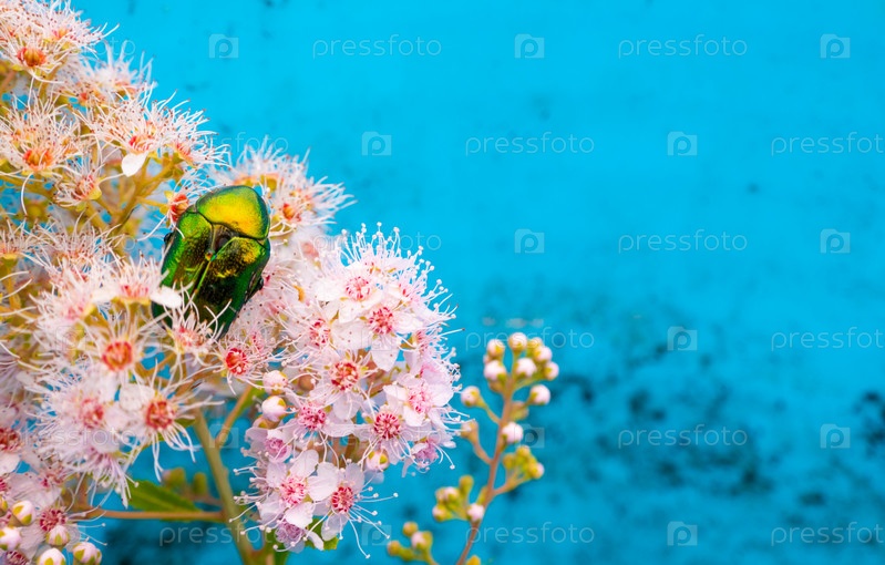 Золотистая бронзовка на цветках спиреи