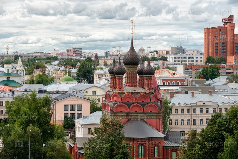 Летний вид сверху на город Ярославль и Богоявленскую церковь, Россия