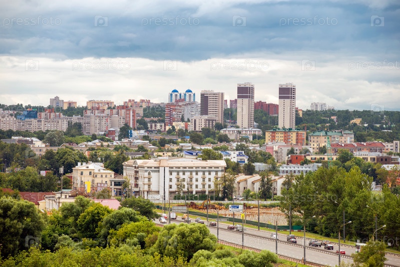 Вид со звонницы Спасо-Преображенского монастыря на город Ярославль. Золотое кольцо. Россия