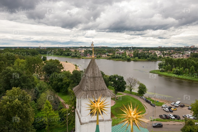 Ярославль. Башня церкви Введения и вид на реку Которосль с колокольни Спасо-Преображенского монастыря. Золотое кольцо. Россия