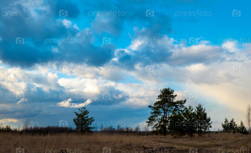 Пейзаж с величественным красивым драматическим предугрожающим небом. Облачное небо