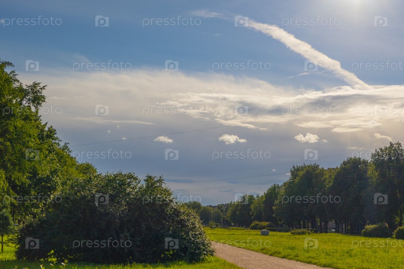 Пейзаж с величественным красивым драматическим предугрожающим небом. Облачное небо