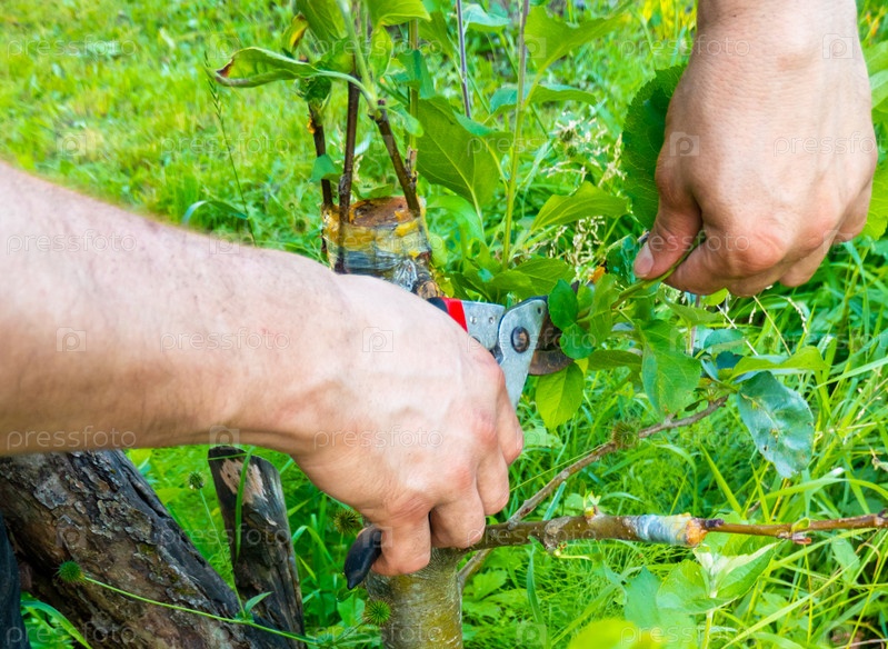 Привитое плодовое дерево в саду