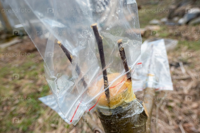 Привитое плодовое дерево в саду