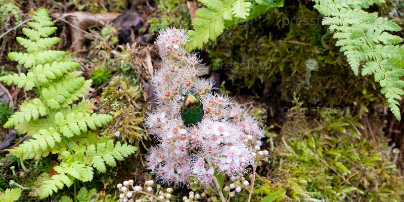 Майский жук розовый - Cetonia aurata - на цветках Spirea bumalda