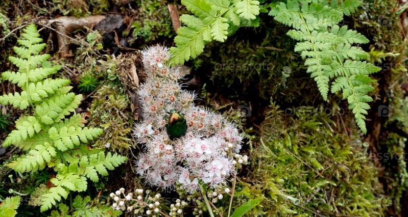 Майский жук розовый - Cetonia aurata - на цветках Spirea bumalda