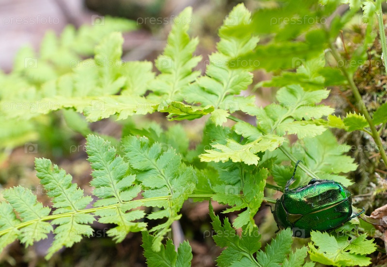 Бечок зеленоватый розовый майский жук сидит на пне, также известной как Cetonia aurata