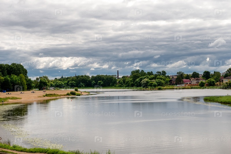 Городской пляж на реке Которосль в пасмурный день, Ярославль